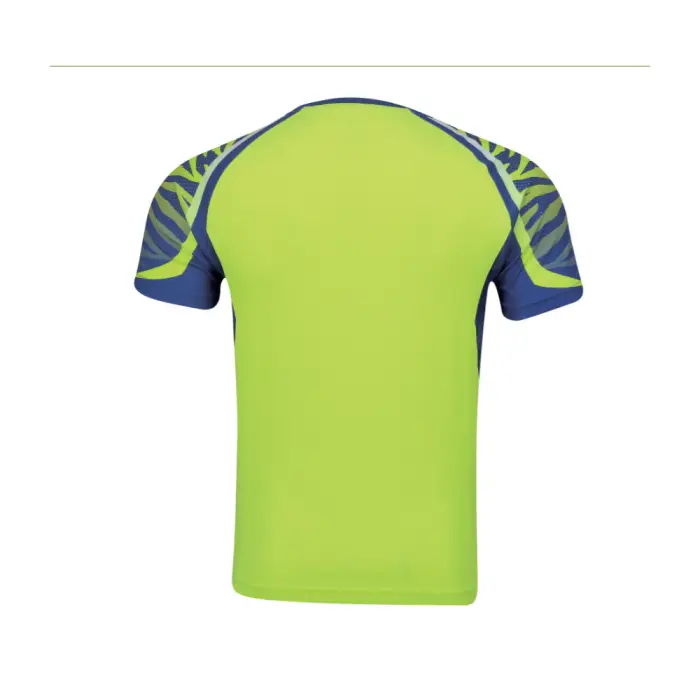 The premium badminton uniform displays a bright green and blue pattern design, which uses lightweight breathable fabric that stretches to create a comfortable fit. The system provides athletes with essential comfort and flexibility, which allows them to perform at their best during matches.